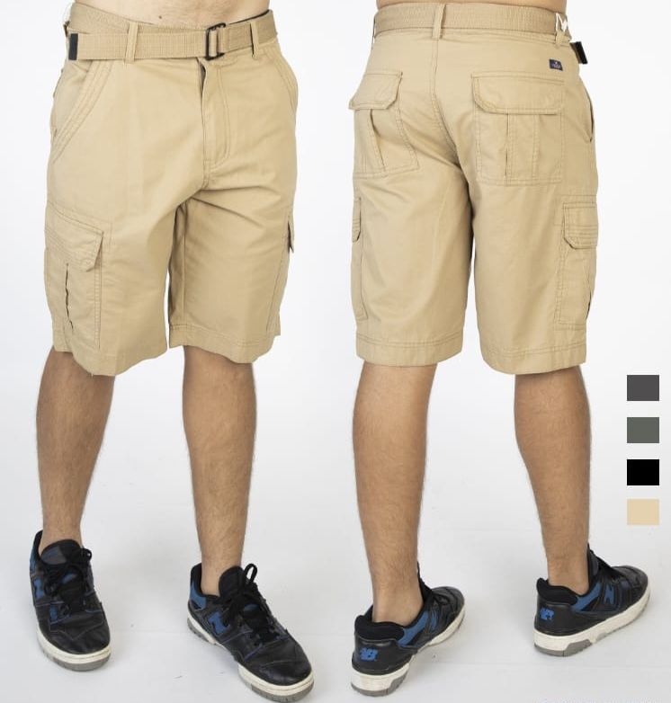 Bermuda o calzoneta estilo cargo con cuatro bolsillos y dos bolsas cargo. Con cinturón